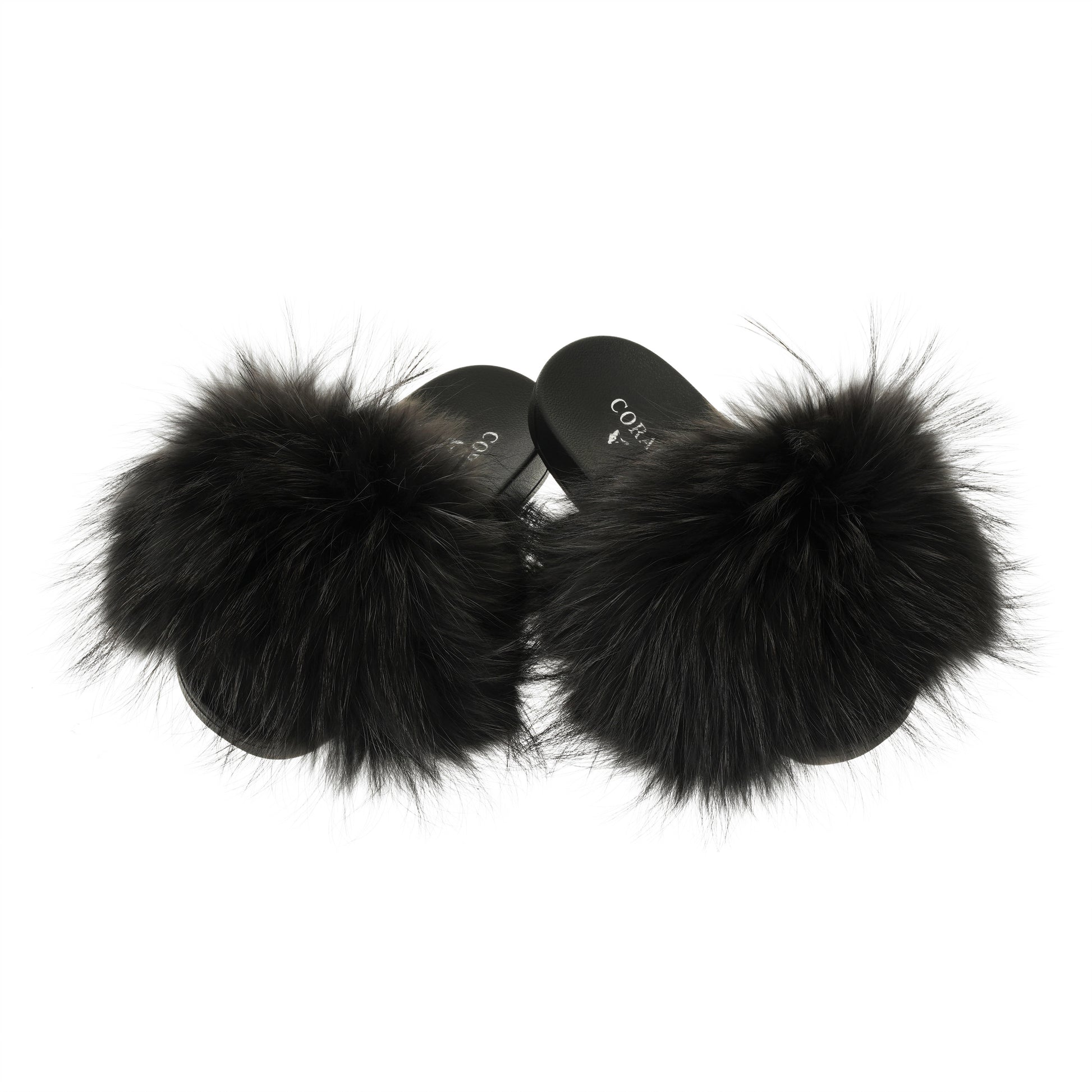 Black Natural Fur Slides