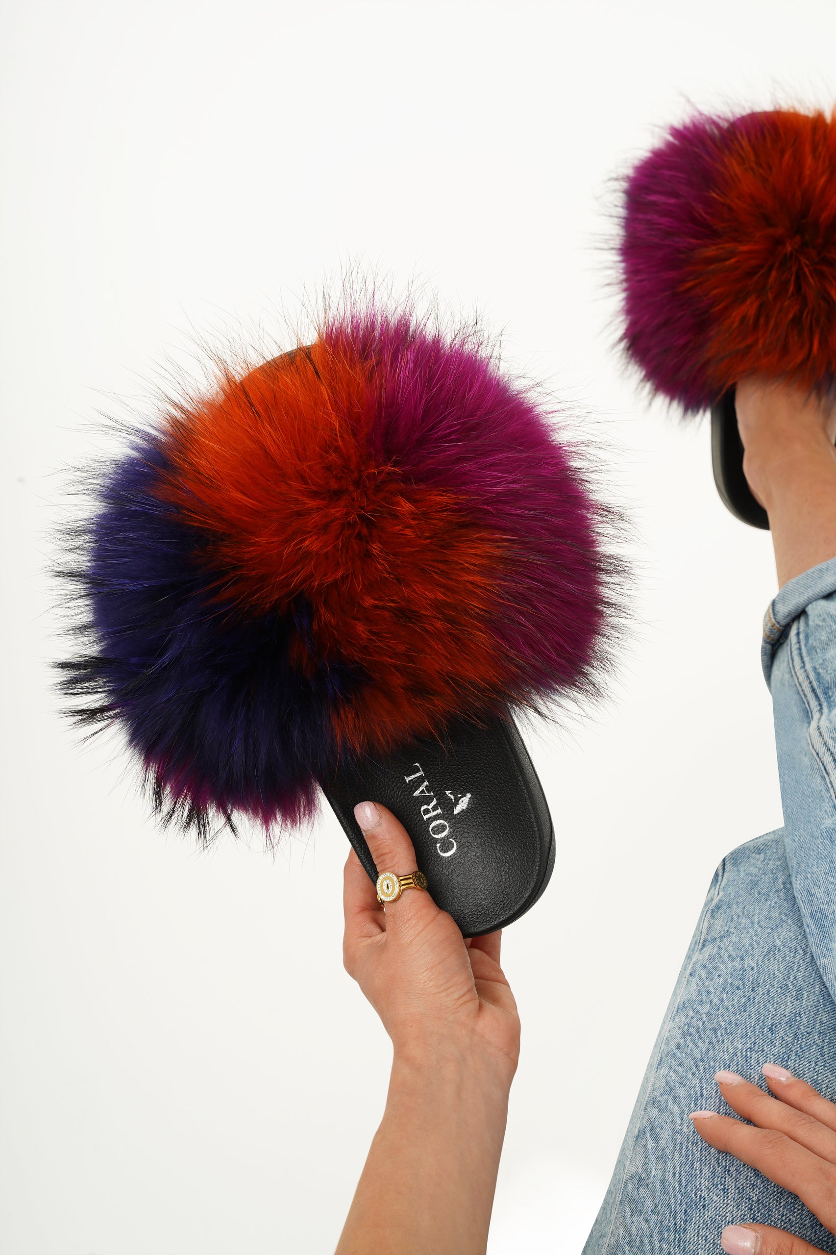 A modern statement slide designed to elevate everyday looks. Voluminous natural fur creates a rich, plush texture with immediate visual impact and exceptional softness.